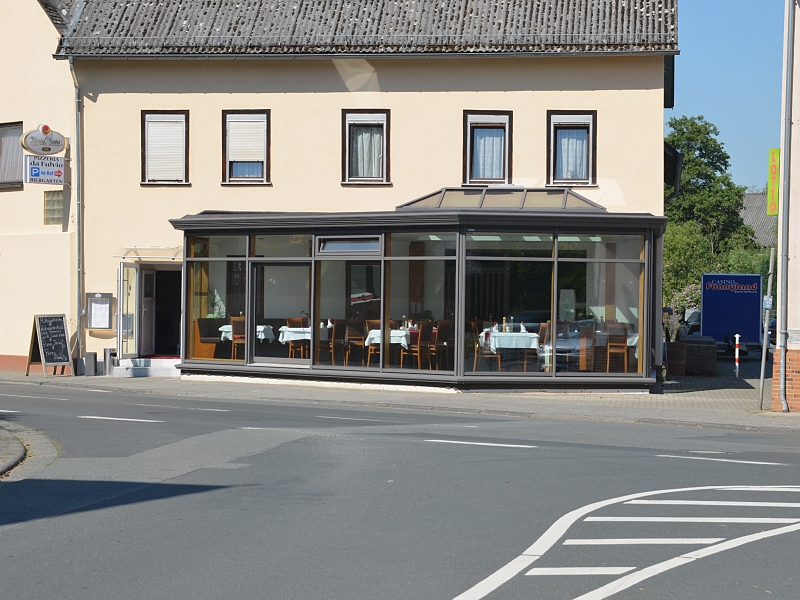 Winter garden with hipped roof dome as an extension of the dining area of ??the Pizzeria da Fulvio in Solms.
