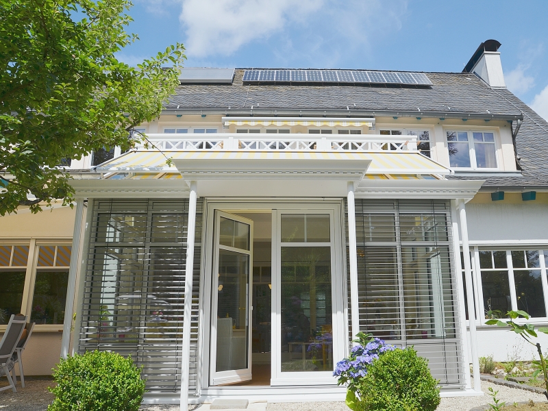 With a completely glazed roof, areas must be shaded from the outside. If this were not the case, the winter garden could not be used in the sunshine. Due to the large glass area of ??the roof in relation to the base area, solar control glass does not offer sufficient protection against glare and overheating !!!